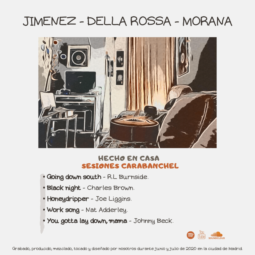 Sesiones Carabanchel: Hecho en casa es el trabajo inmediatamente posterior al momento más crítico del encierro obligatorio que pasamos en la ciudad de Madrid estos tres argentinos unidos por el Blues, fue el comienzo de plasmar el reportorio que veníamos tocando por los bares y escenarios de la capital español y aledaños. La grabación fue realizada en nuestro hogar de manera totalmente casera y en directo por lo que se refleja la frescura de haberlo realizado de esa manera. Espero que lo disfruten tanto como yo al hacerlo.